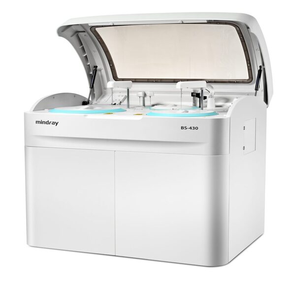 The Mindray BS-430 is a fully automated clinical chemistry analyzer designed for medium to high-volume laboratories, offering high accuracy, reliability, and efficient workflow. With a throughput of up to 420 tests per hour, advanced optical technology, and a user-friendly interface, it delivers fast and precise biochemical results while minimizing manual intervention. Its wide test menu, automatic calibration, and built-in quality control make it a cost-effective and dependable solution for hospitals and diagnostic laboratories.